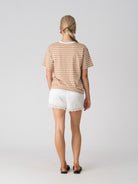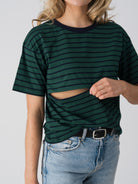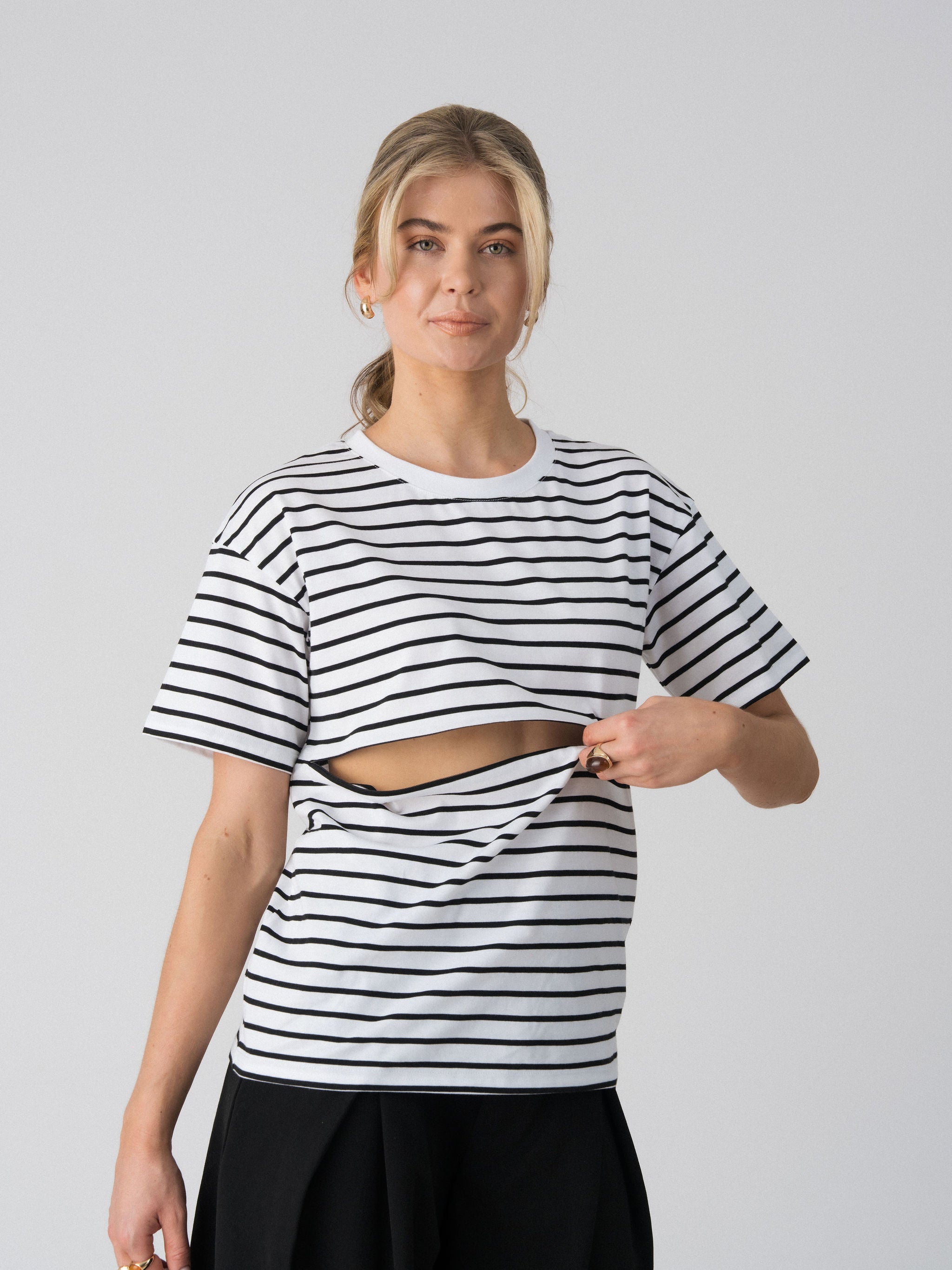 The Issa Everyday Tee features a classic striped pattern and a relaxed silhouette designed for effortless, everyday wear. Thoughtfully constructed with a discreet horizontal underbust zip concealed within the stripe design, it offers easy breastfeeding access without looking like a nursing tee.