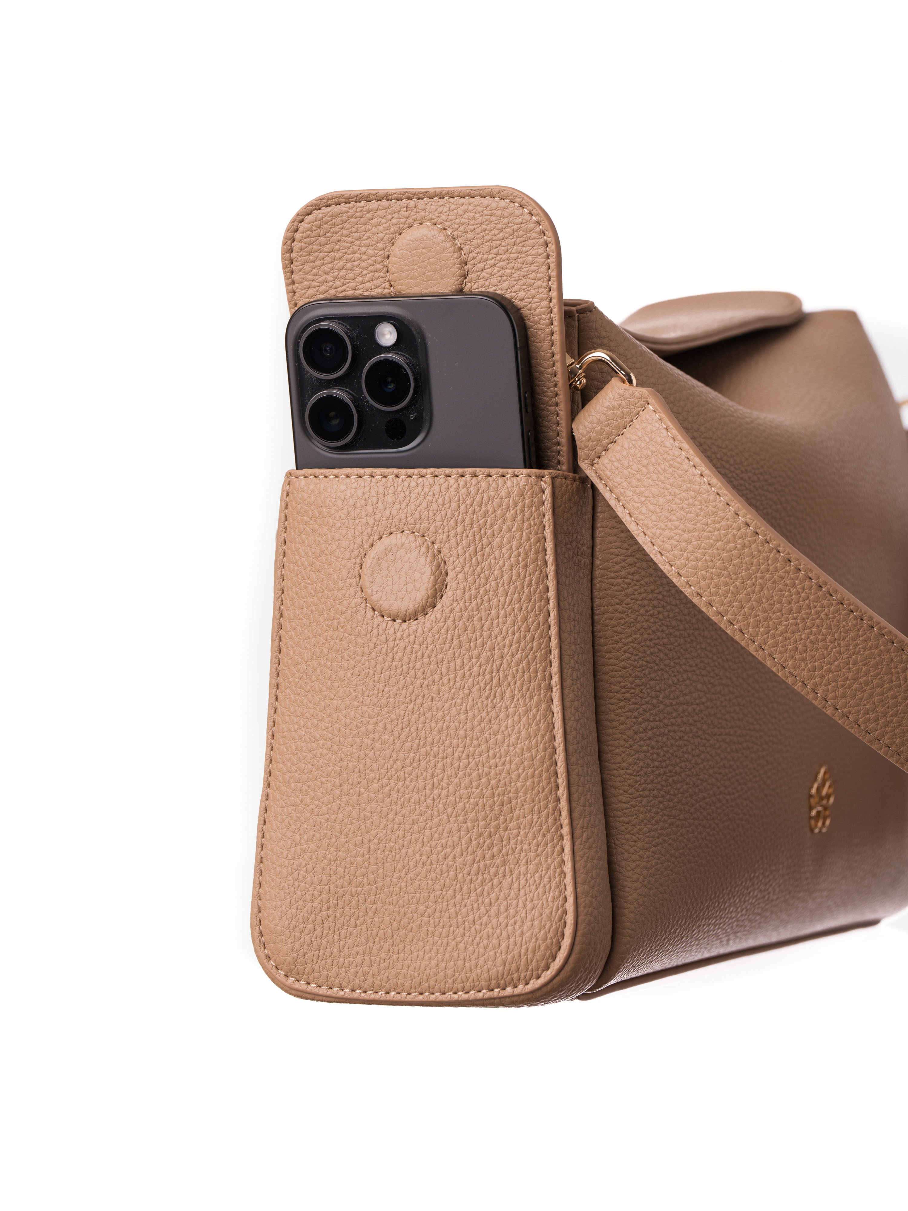 Designed for modern mums who want function without sacrificing style, the Hera Pram Caddy is a chic, compact baby bag that transitions effortlessly from pram to shoulder. Thoughtfully designed compartments keep essentials organised, while elevated finishes and soft structure make it feel more like a handbag than a baby bag.